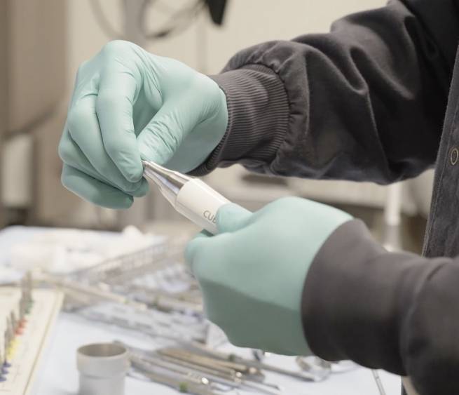 - Разборный, автоклавируемый наконечник из керамики и медицинской стали.